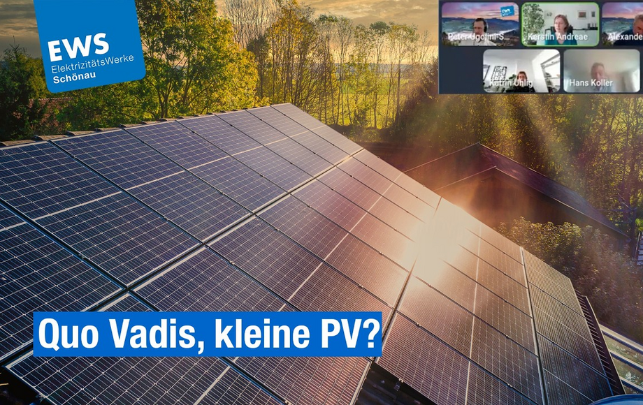 Was das in der Praxis bedeutet, hat das Fraunhofer-Institut für Solare Energiesysteme ISE in der von den EWS beauftragten Studie «Dezentrale PV als Säule der Energiewende: Analyse und Perspektiven für kleine Dachsolaranlagen» untersucht: Die Direktvermarktung kleiner Anlagen ist derzeit schlicht unwirtschaftlich. In einer Online-Veranstaltung am 9. März 2026 haben wir die zentralen Ergebnisse sowie die energiepolitischen Implikationen der Studie gemeinsam mit dem Fraunhofer ISE präsentiert. Dabei ging unser Vorstandsmitglied Alexander Sladek mit Kerstin Andreae (Vorsitzende der Hauptgeschäftsführung des BDEW) sowie den Bundestagsabgeordnet:innen Katrin Uhlig (Bündnis 90/Die Grünen) und Hans Koller (CSU) in den Austausch. Peter Ugolini-Schmidt, Leiter Politik der EWS, moderierte das Format.