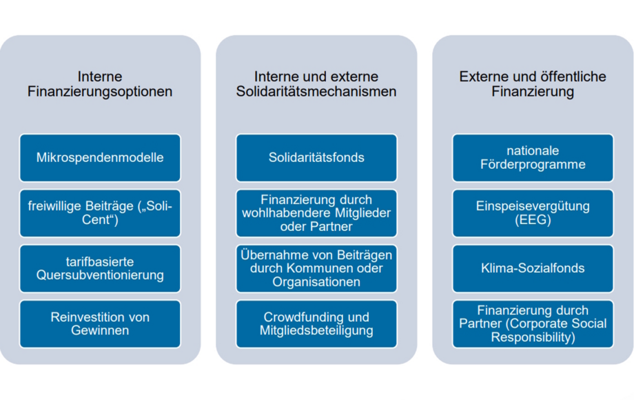 - Strategisch entscheiden und kooperieren: Managemententscheidung für aktive Förderung vulnerabler und unterrepräsentierter Gruppen. Kooperation mit Akteur:innen wie Kommunen, Sozialverbänden und Energieagenturen, die Zugang zu Zielgruppen haben oder deren Bedürfnisse kennen.
