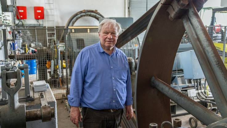 Wie kann man nur so etwas kaufen? «Ach – man muss einfach Optimist sein!», sagt Bernd Walters und dreht sich auf derselben Stelle, wo er 28 Jahre zuvor noch «ziemlich bedröppelt» dreinschaute und ein Mitarbeiter der festen Meinung war, dass da ja wohl nichts mehr zu retten sei. Doch zweieinhalb Jahre später stand die Halle an der Ruhr wieder: Die Turbine aus der Chemnitzer Maschinenfabrik Germania AG von 1920 rotierte und lieferte mit zwei weiteren Rädern insgesamt 700 Kilowatt Leistung in der Spitze. «Vor der Arbeit in der Praxis war ich jeden Tag zwei Stunden hier, in der Mittagszeit und am Abend noch einmal. Mein Vater war Pensionär und hat auch geholfen. Aber das komplette Tragwerk des Dachs mit allen Stahlkonstruktionen habe ich ganz alleine zusammengeschweißt.» Als Mediziner, wohlgemerkt.