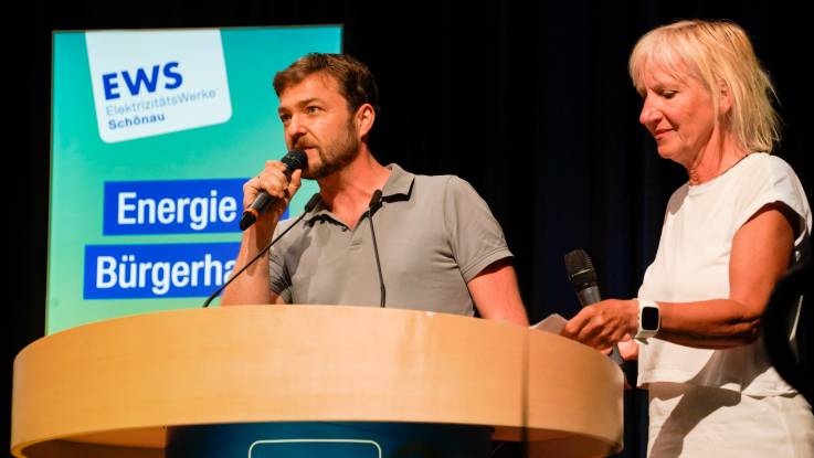 EWS-Vorstand Sebastian Sladek und Energiereferentin Eva Stegen führten an beiden Tagen durch die Veranstaltung.