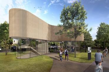 Visualisierung der im Bau befindlichen EWS-Heizzentrale in der Nähe des Freibades Schönau (Schwarzwald).